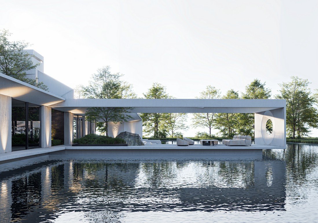 This architectural design embodies the seamless integration of natural conditions with residential living. By thoughtfully harmonizing the built environment with its surroundings, it enhances the natural landscape while prioritizing sustainability and comfort. Every detail, from the orientation to the materials, is carefully planned to optimize light, airflow, and energy efficiency, creating a living space that exemplifies innovation and environmental harmony. This approach evokes the traditional saung Sunda, a small, open-sided pavilion originating from the Sundanese culture of West Java, Indonesia, typically built by the edge of a pond, where nature and human presence coexist in perfect balance.
